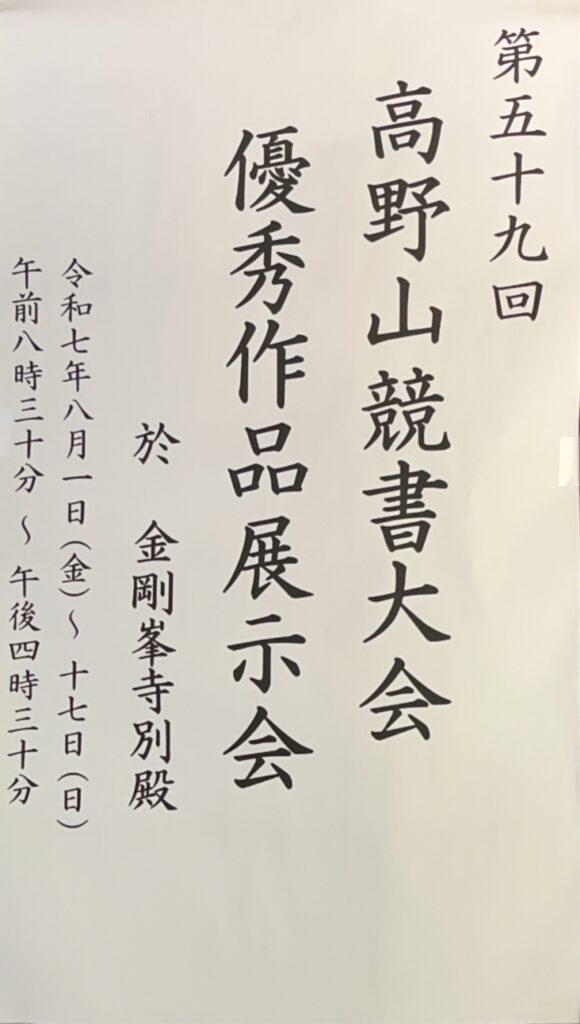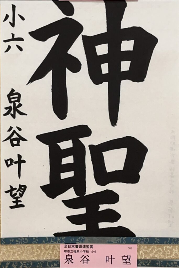 私の子供が書道教室に通っていまして、今年度も高野山競書大会で、
